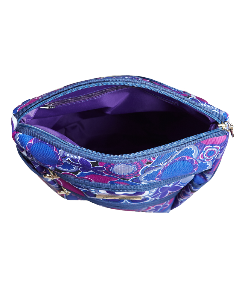 This Pure Amethyst Backpack is made of waterproof canvas material, 3 exterior zippers total with 2 exterior side open pockets for water bottles, cell phone and more. Interior zipper with water-resistant lining. Adjustable straps. Roomy and lightweight.